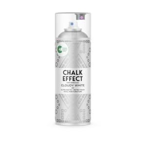 Chalk Effect N03 – Cloudy White, το πρώτο παγκοσμίως ματ σπρέι ουδέτερου αποτυπώματος άνθρακα. Ανανεώστε τα παλιά σας έπιπλα και διακοσμητικά αντικείμενα δίνοντάς τους ένα εντυπωσιακό ματ φινίρισμα κιμωλίας με τον πιο εύκολο και δημιουργικό τρόπο. Ιδανικό για έπιπλα και διακοσμητικά αντικείμενα.