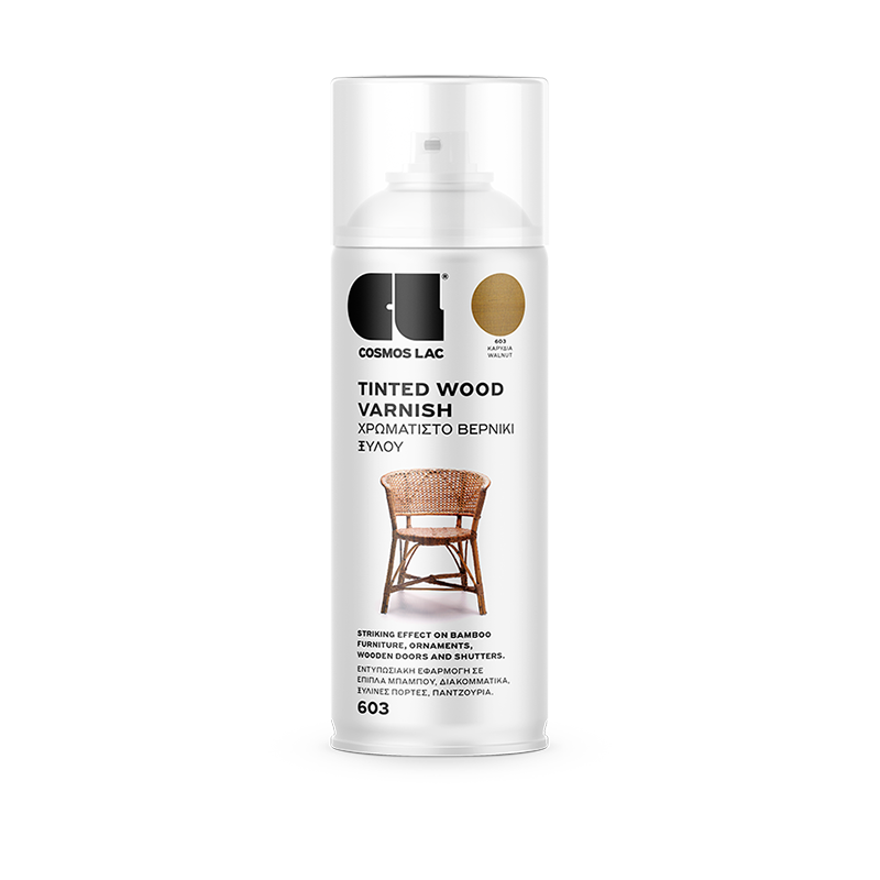 Tinted Wood Varnish 603 – Walnut offers semi-transparent finish available in multiple colors. Ideal for painting and protecting wooden surfaces, it can be applied to unpainted wood or used to refresh old varnishes. Easy to apply on furniture, tiles, ornamental objects, wooden doors, frames, and more.